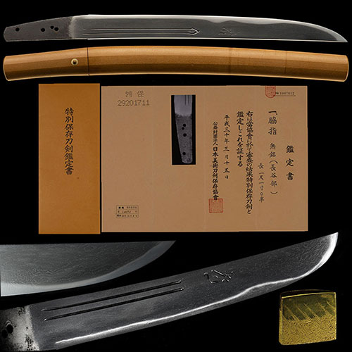 Moto-Haba 3.0cm Saki-Haba 1.9cm Moto-Kasane 0.60cm Shinogi-Thikess 0.60cm Saki-Kasane 0.39cm Kissaki-Chou 2.8cm Nakago-Chou 16.4cm Weight 545g - 国Country